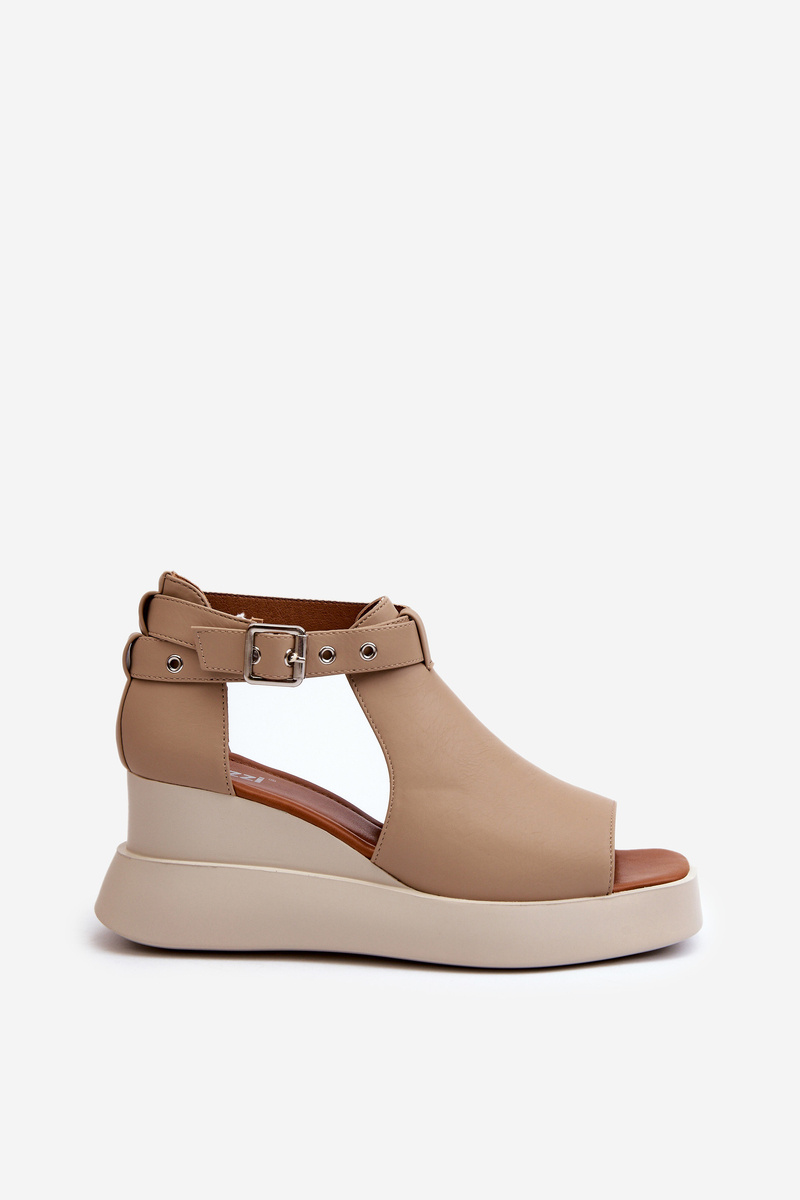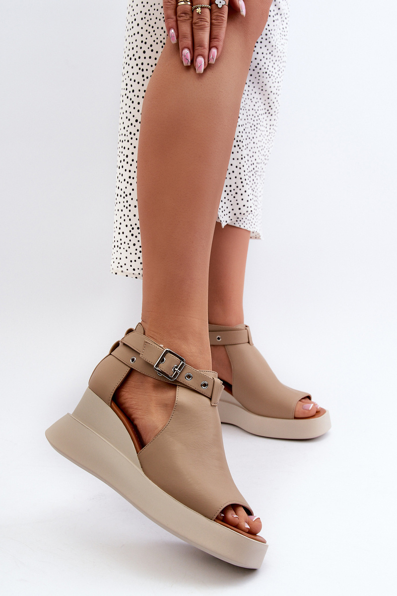 Dámske sandále na platforme a klinčeku z ekokože béžové Hloeli