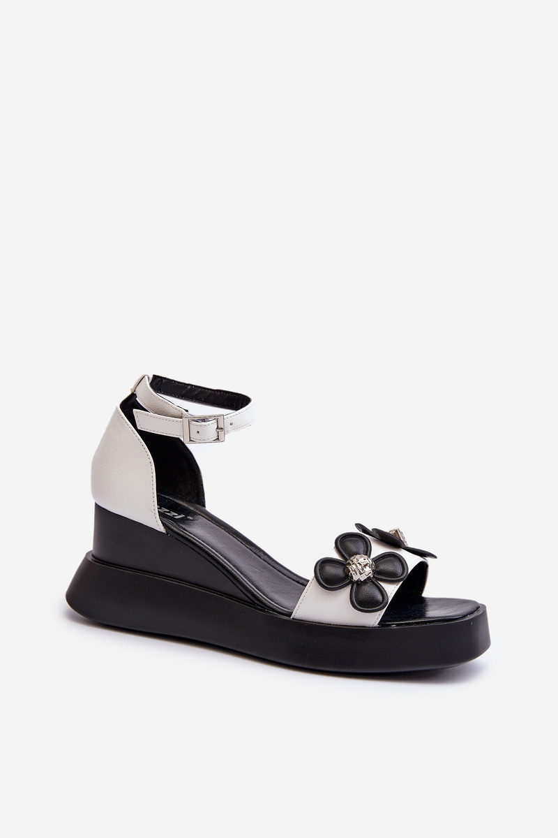 Dámske sandále na platforme a klinové podpätky s kvetmi Biele Foviana