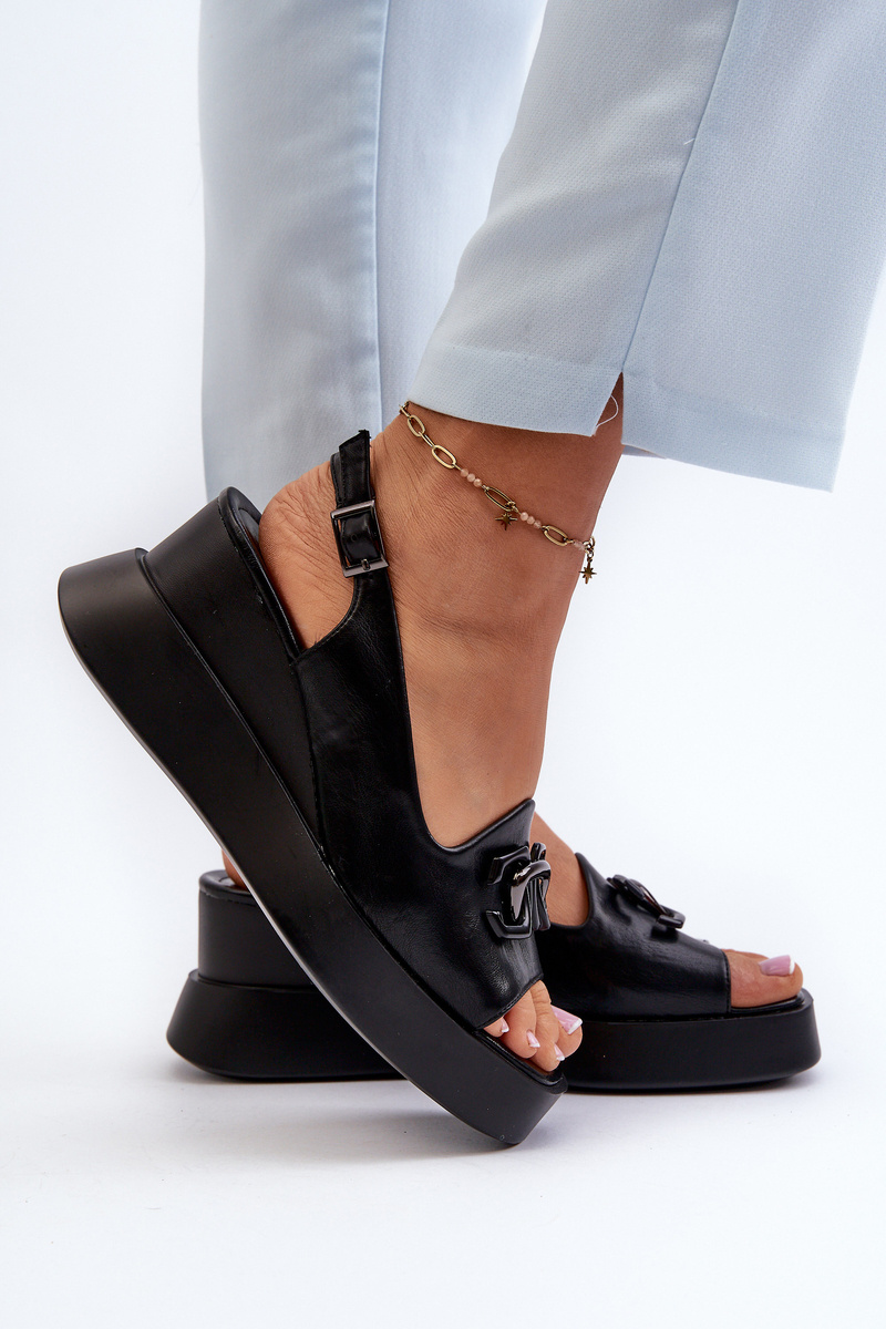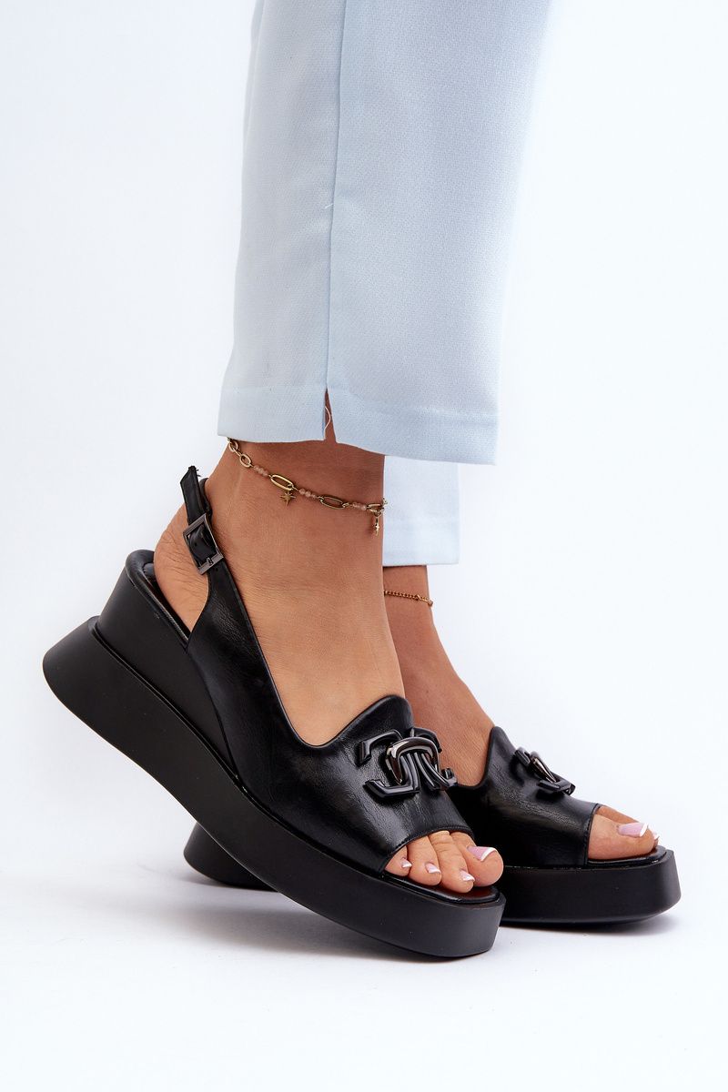 Dámske sandále na platforme a klínu s ozdobou čierne Janesca