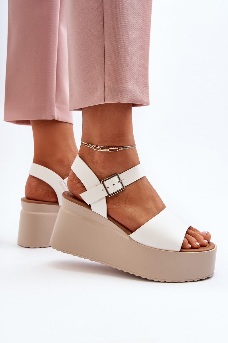 Dámske sandále vyrobené z eko kože. Vsadené na klinu a platforme, čo im nielenže dodáva módnym vzhľad, ale tiež poskytuje stabilitu počas chôdze. Zapínajú sa na nastaviteľný popruh so sponou, ľahko ich prispôsobíte svojej nohe. Při výběru velikosti se řiďte tabulkou velikostí.