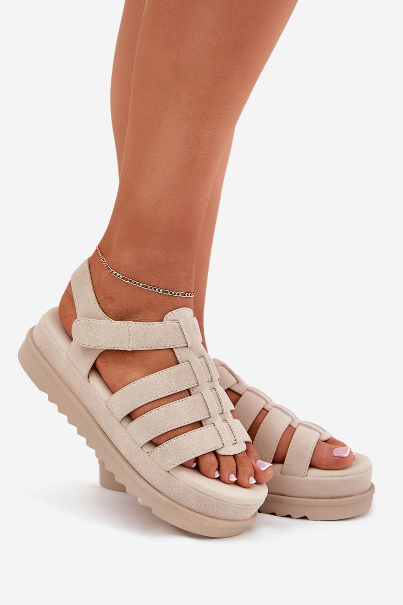 Dámske Sandále Na Platforme Eko Semišové Béžové Filisenia
