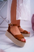 Štýlové a módne sandále na bielizni! Zdobené pásom zviazaným okolo členku. Model nastavený na vysokú plošinu, ktorá zdvihne číslo a stabilizuje polohu. Nečakajte a kúpte si teraz za skvelú cenu! Pri výbere veľkosti navrhnite tabuľku veľkosti.