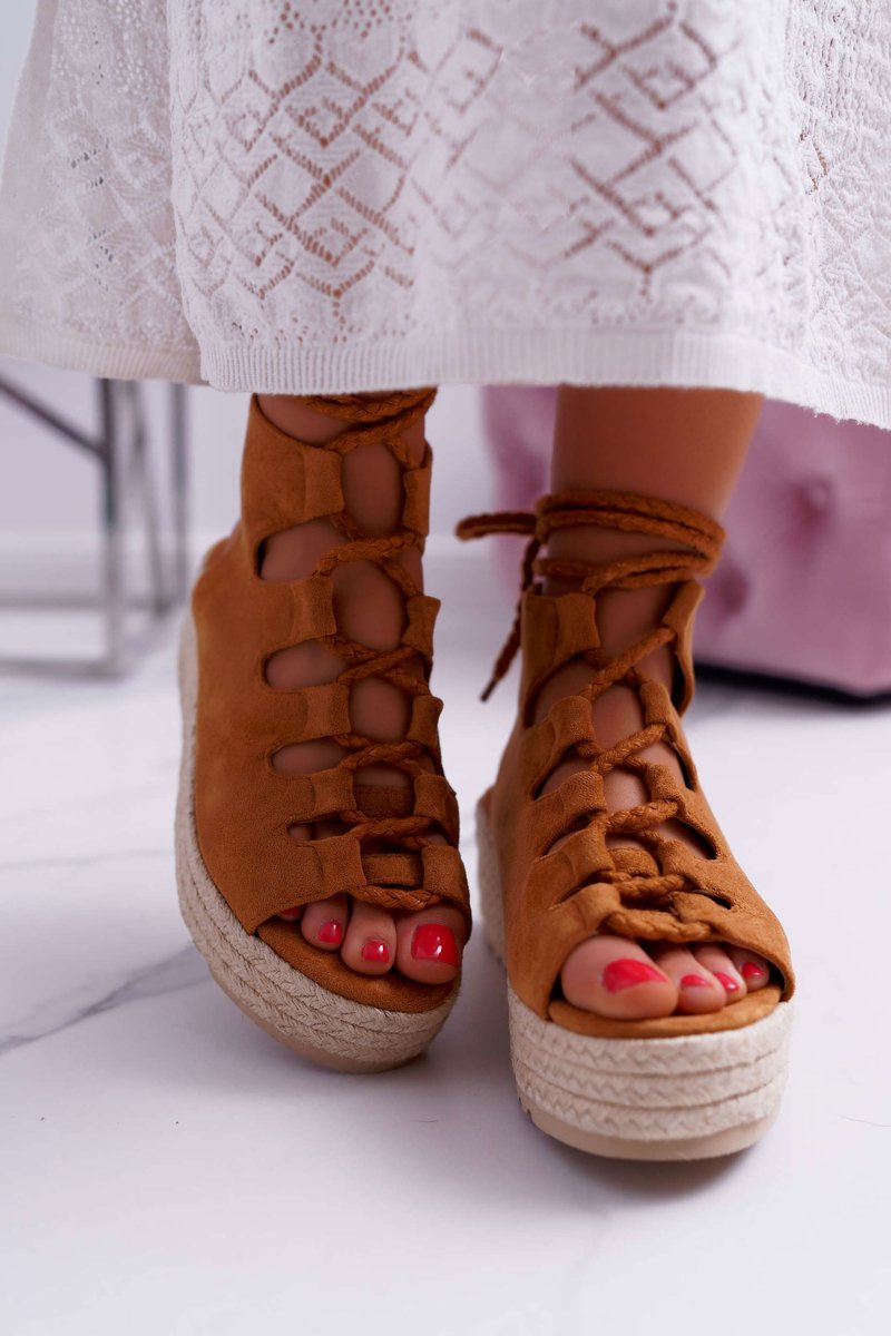 Dámske sandále na platforme s čipkou espadril -up ťav
