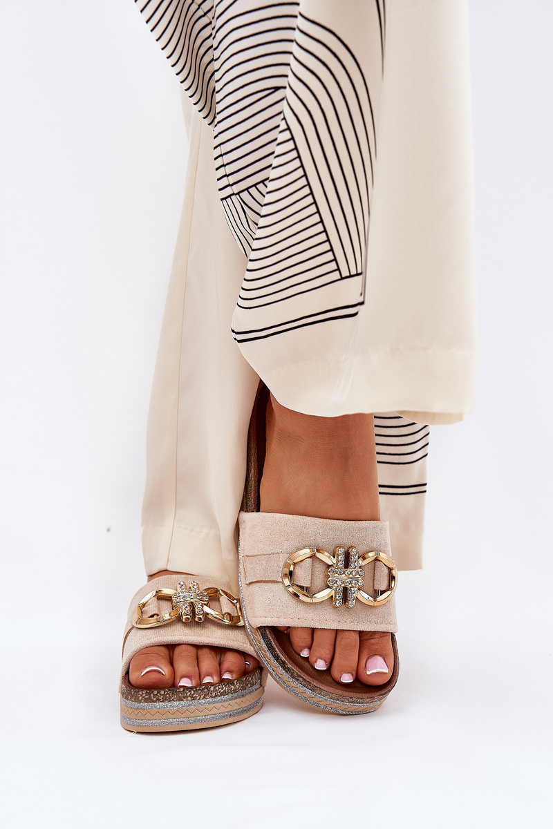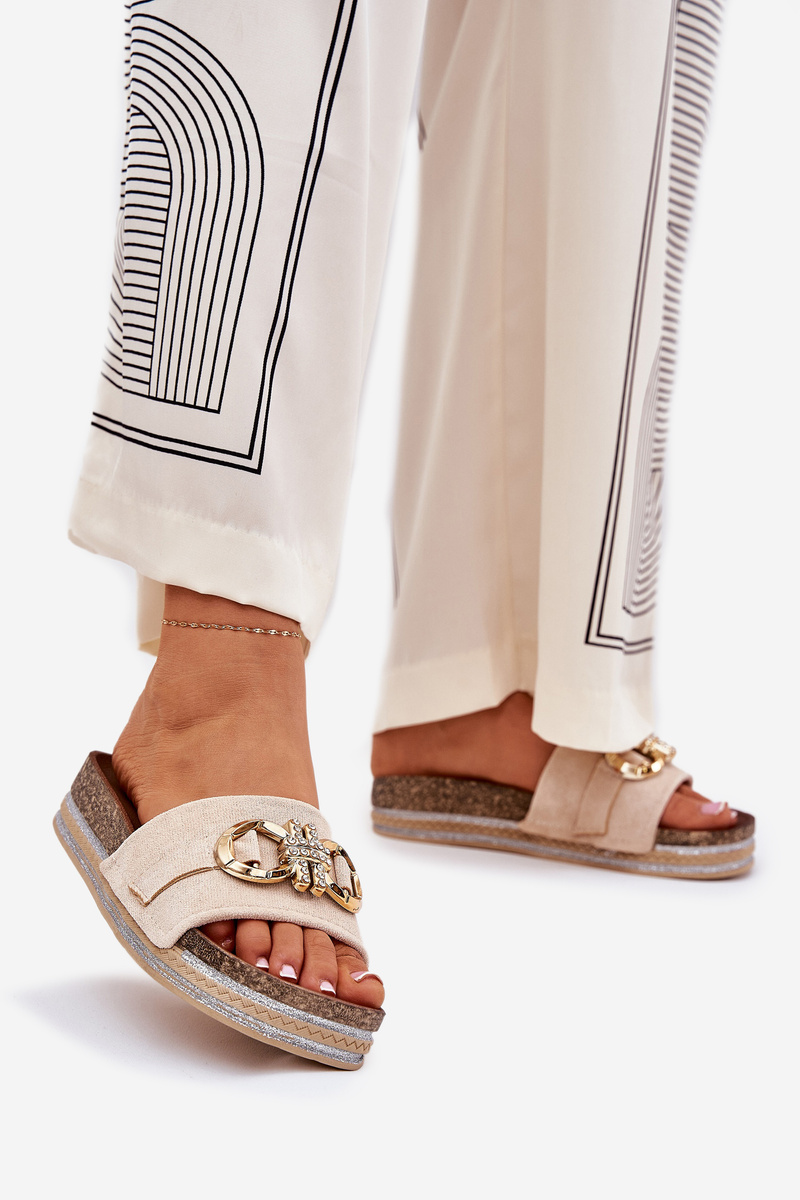 Towar wprowadzony przed 13.12.2024Tak Dámske Sandále Na Platforme S Leskom A Zlatou Dekoráciou Béžové Rilirea