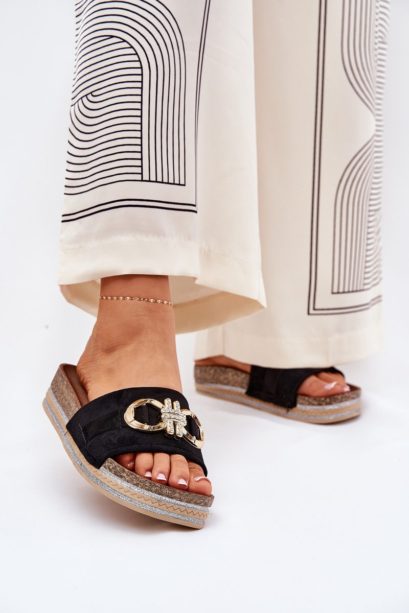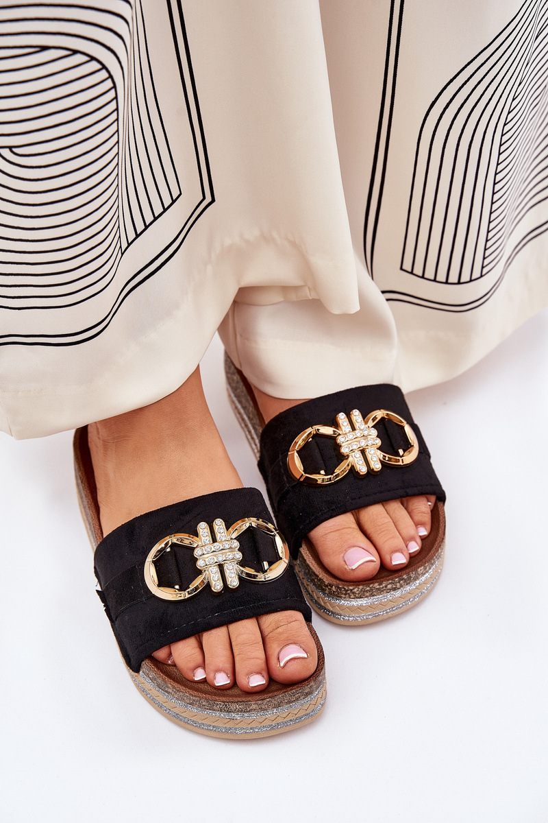 Dámske Sandále Na Platforme S Leskom A Zlatou Dekoráciou Čierne Rilirea