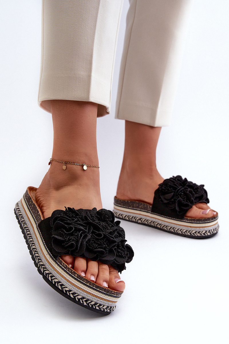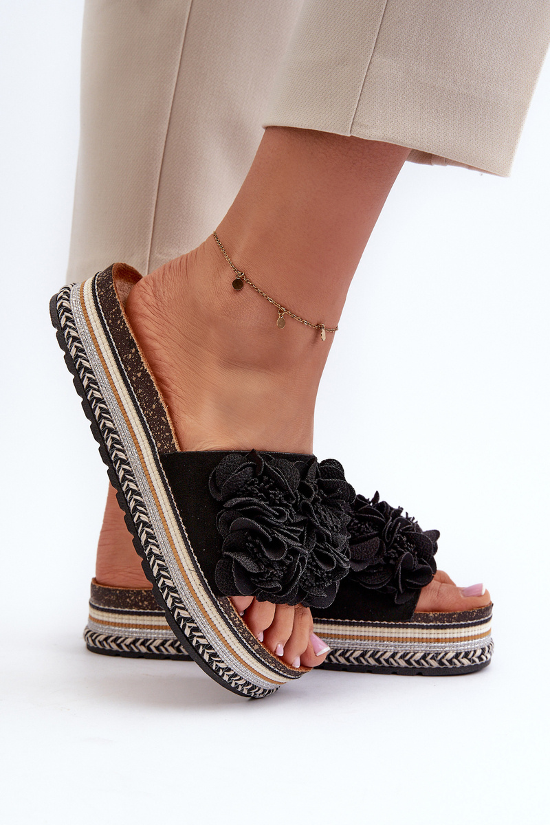 Dámske sandále na platforme s ozdobením kvetmi čierne Nodina