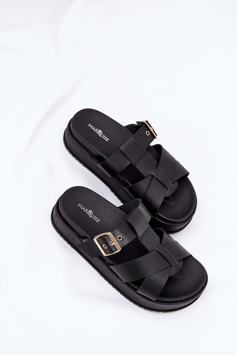Dámske Sandále Na Platforme S Popruhmi A Sponou Čierne Elimessa