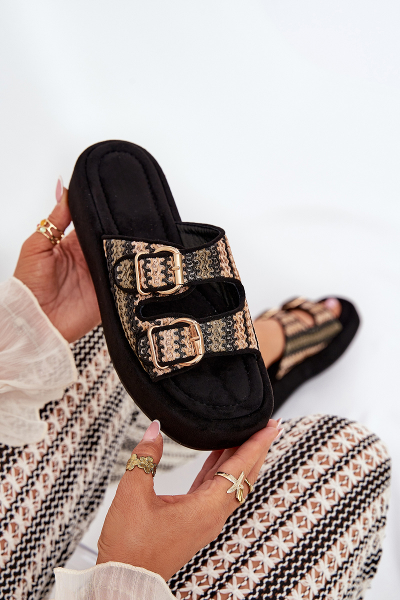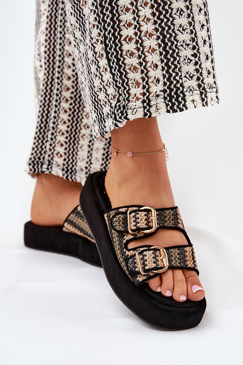 Dámske Sandále Na Platforme S Prackami A Pletením Čierne Limme