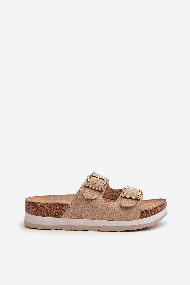 Dámske sandále na platforme so sponami z ekokože zamsíkovej béžové Ursila