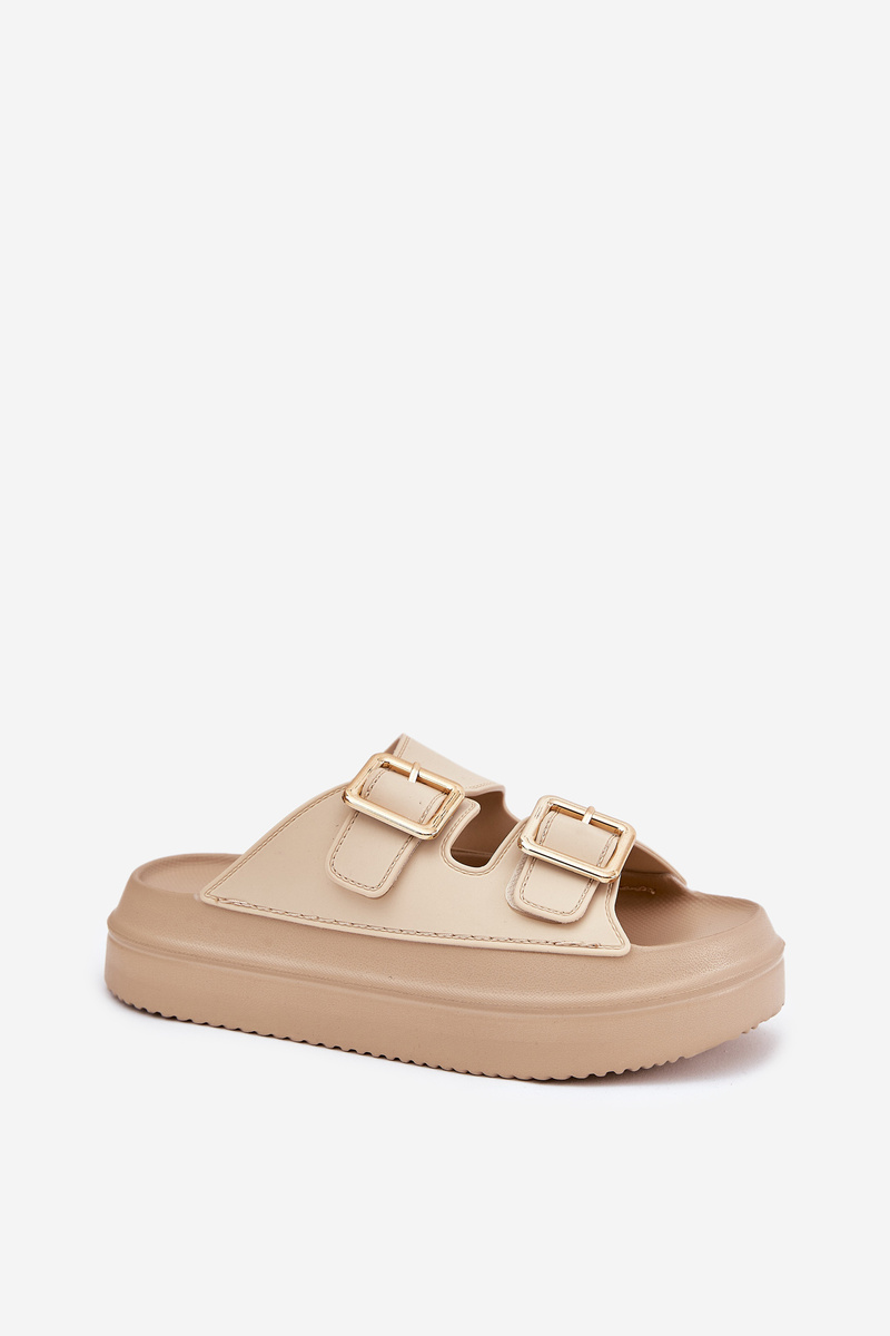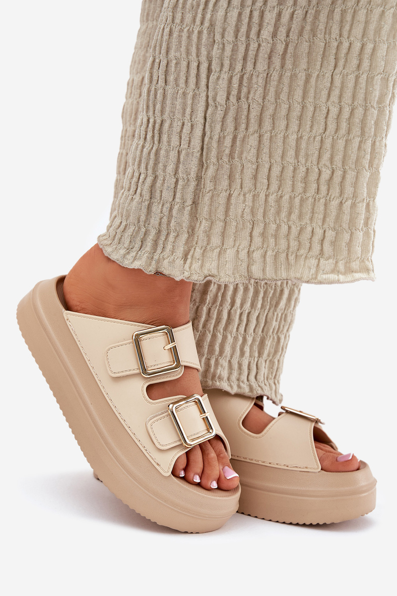 Dámske sandále na platforme so zlatými prackami béžové Zorila