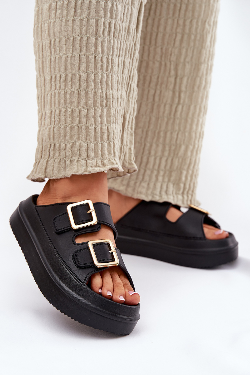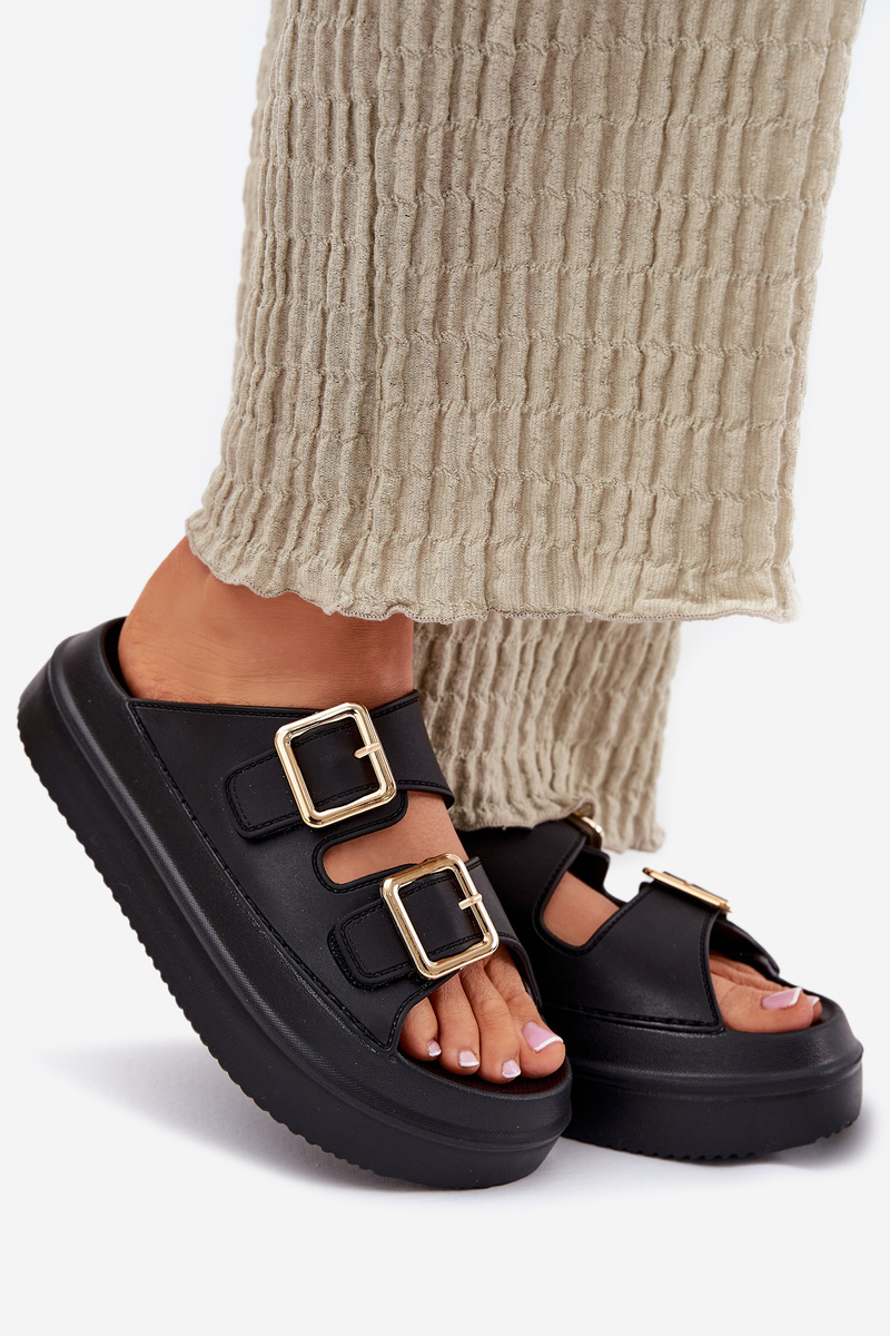 Dámske Sandále Na Platforme So Zlatými Sponami Čierne Zorila