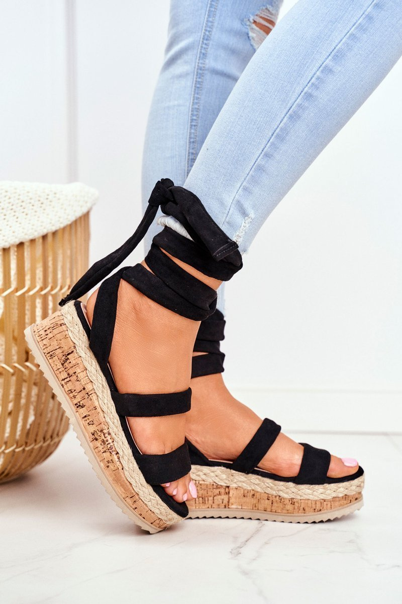 Dámske sandále na platforme zviazané čierne la obľúbené