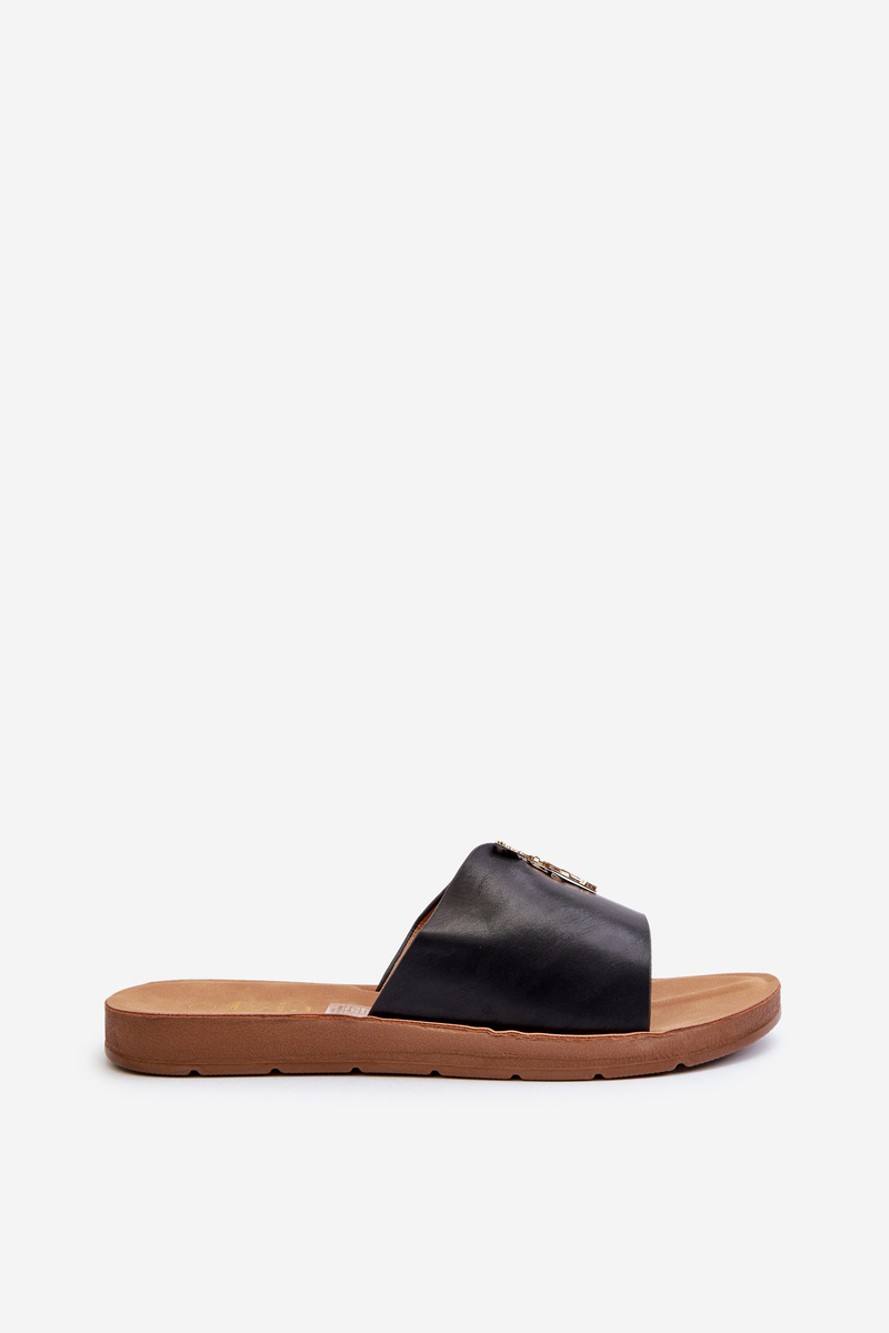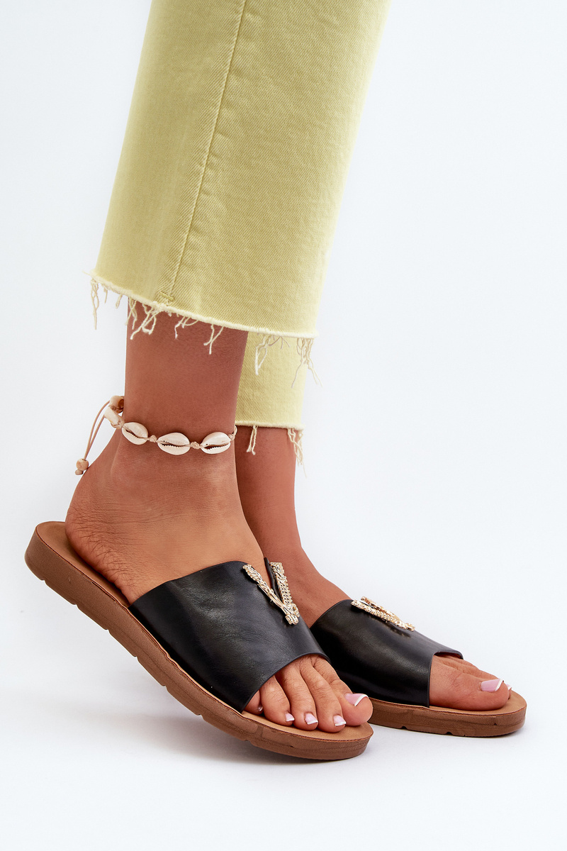 Dámske sandále na plochej podrážke s ozdobou z eko-kože Čierne Makia