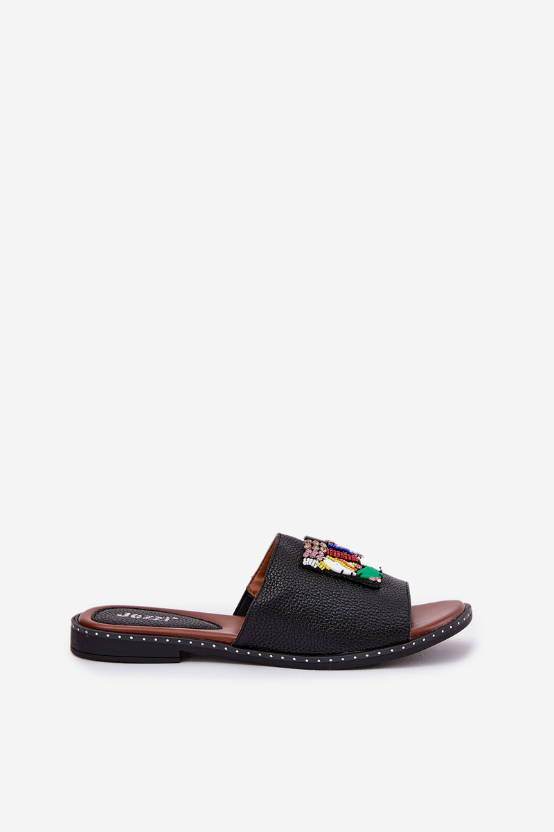 Dámske sandále na plochom podpätku s ozdobou čierne Clelione