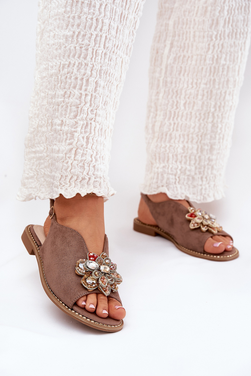 Dámske Sandále Na Ploškom Opätku S Ozdobou S.Barski KV27-001 Tmavobéžové