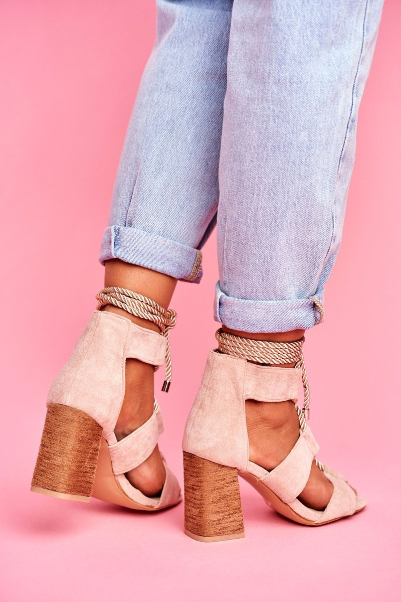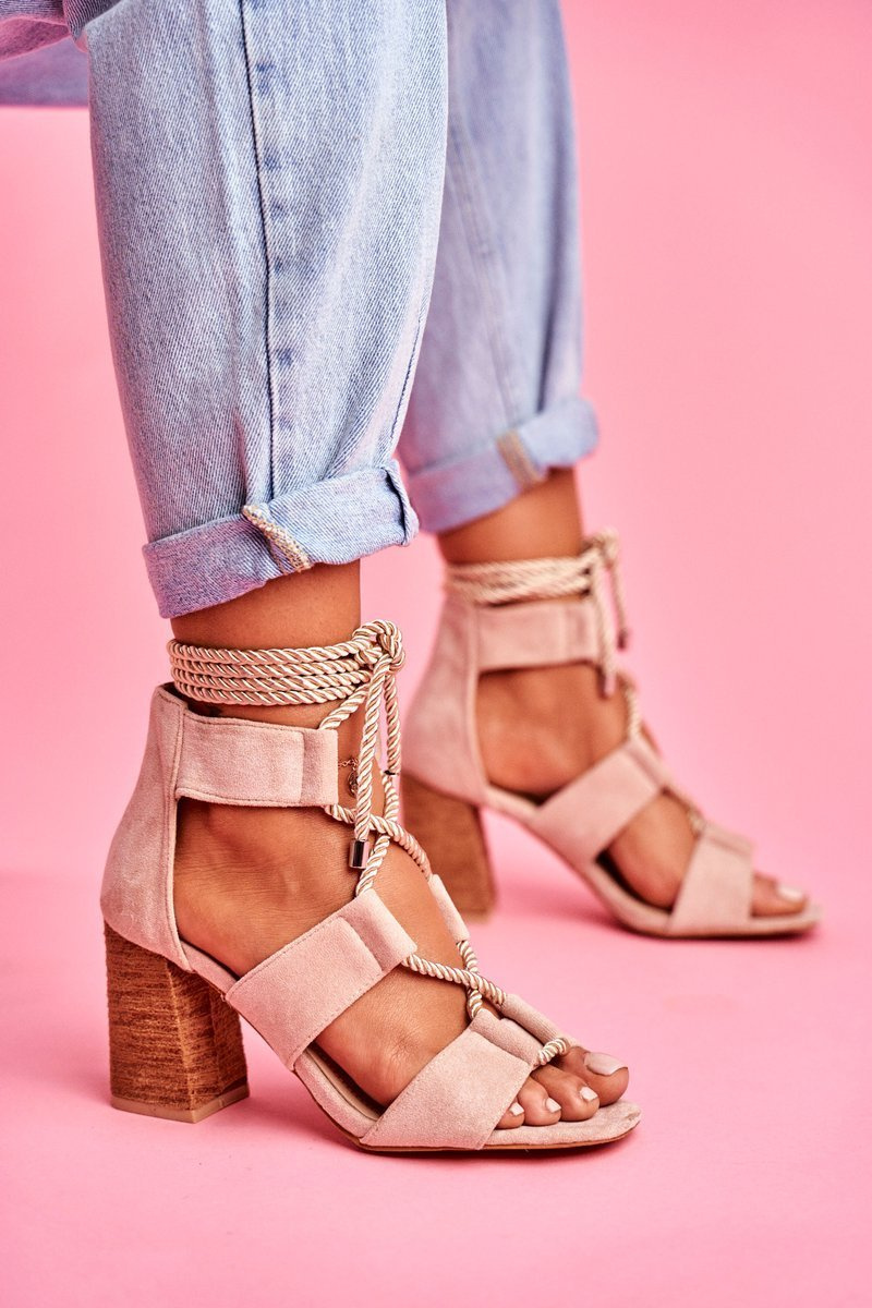 Dámske sandále na stĺpike zviazané semišové béžové amore