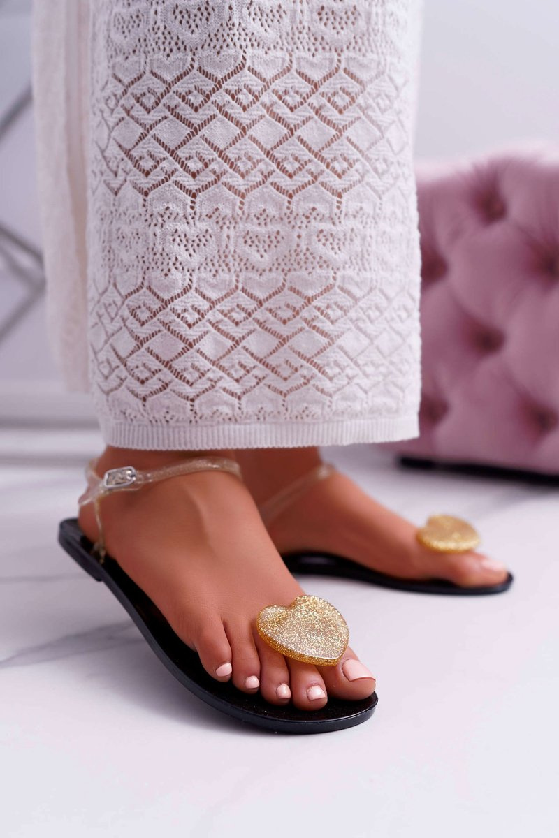 Dámske sandále ploché gumové srdcia zlatá imanda