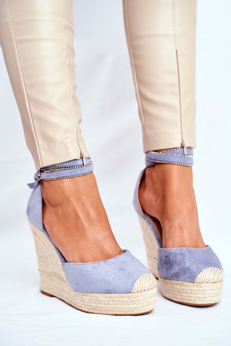 Štýlové a módne sandále na bielizni! Zdobené zviazaným pásom okolo členku. Model nastavený na pohodlný klin, ktorý v kombinácii s mäkkou vložkou nám poskytuje pocit pohodlia v každej situácii. Sada obsahuje druhý pás vo verzii bez strieborných guličiek. Pri výbere veľkosti navrhnite tabuľku veľkosti.