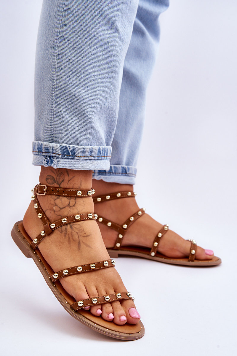 Dámske sandále s dekoratívnymi cvočkami hnedá Dorothy
