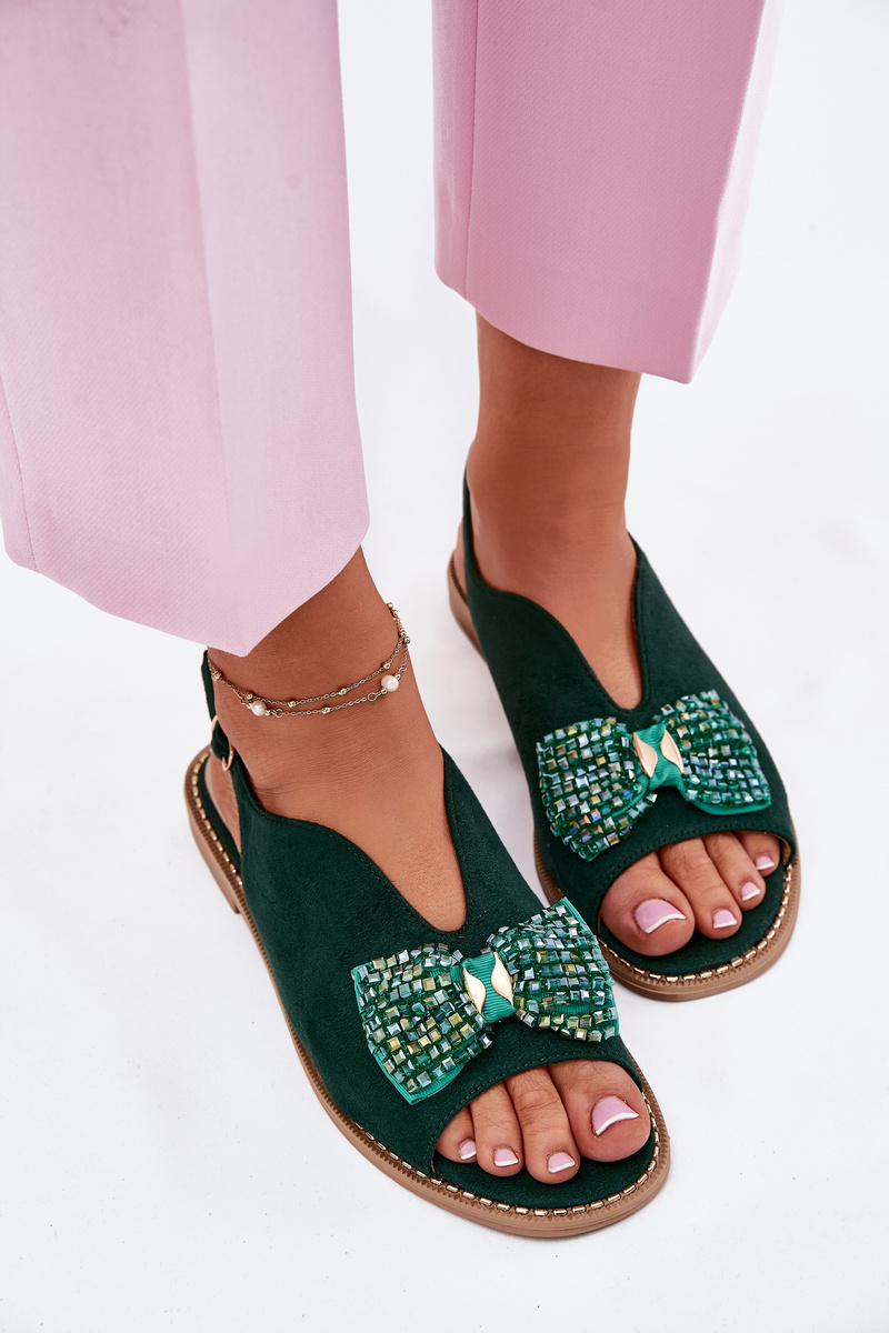 Dámske Sandále S Mašľou Na Nízkom Opätku S.Barski KV51-014 Zelené
