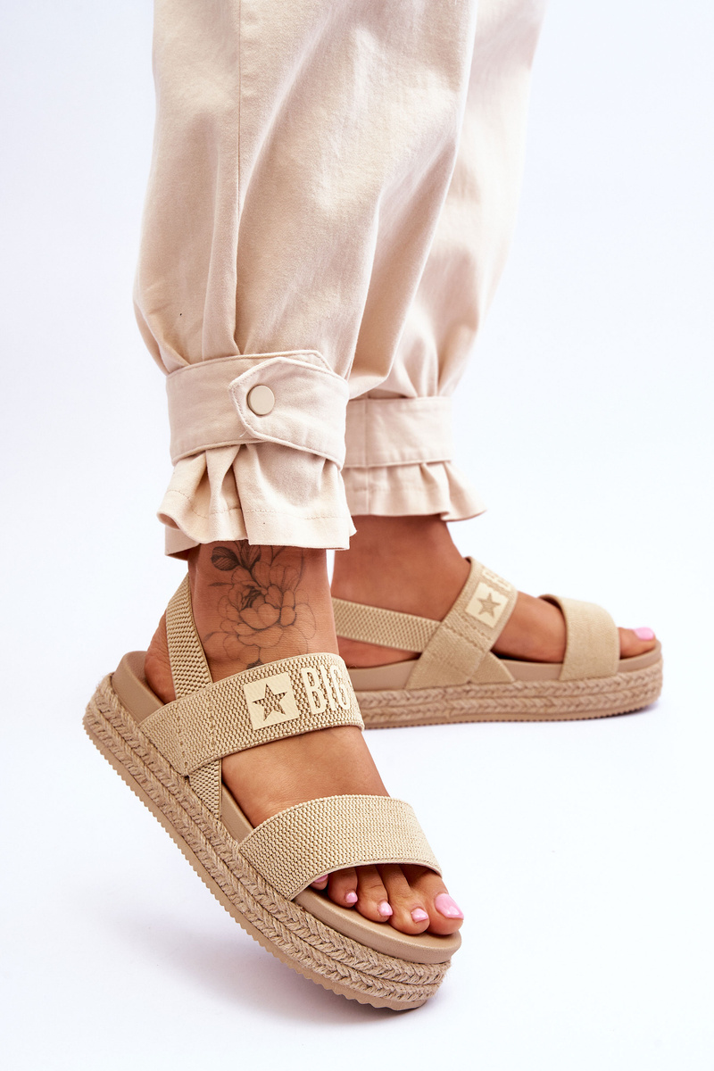 Ľahké, ženské sandále z značky Big Star boli vyrobené z textilného materiálu. Tento model je skĺznutý. Zriadenie obuvi uľahčí flexibilnú gumu. Sandále sú zabudované na masívnej plošine zdobenej jutovým copom. Sandále majú plastovú vložku. Nezabudnite skontrolovať ďalšie modely sandálov od značky Big Star! Pri výbere veľkosti navrhnite tabuľku veľkosti. p>