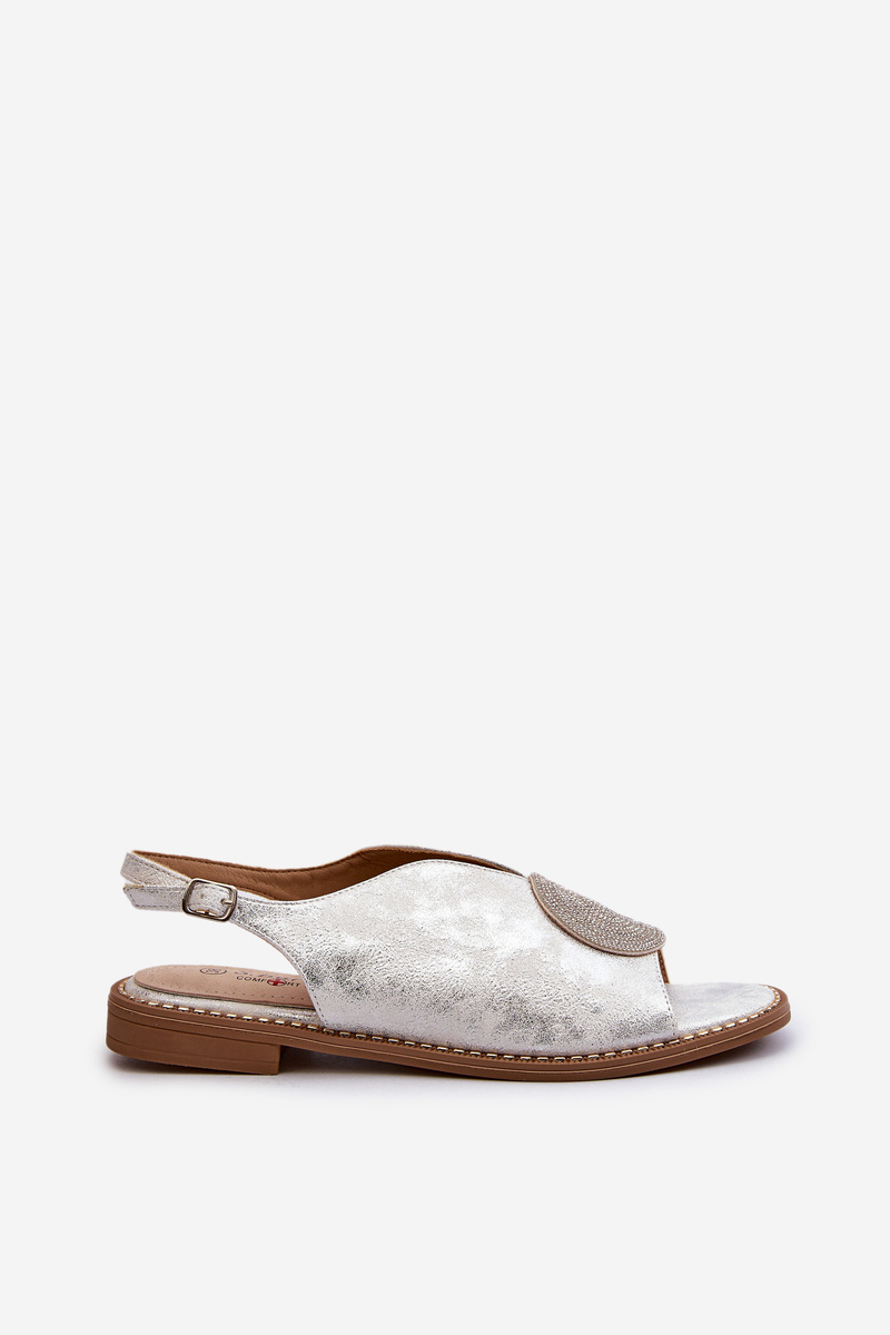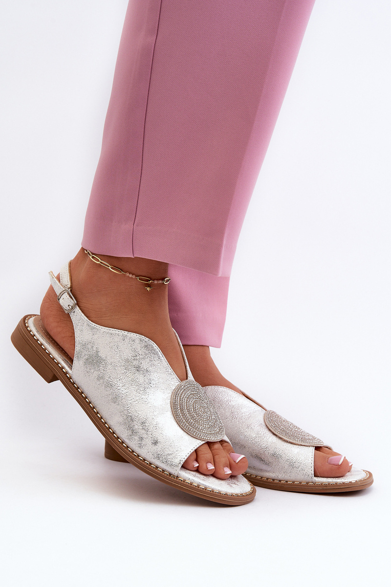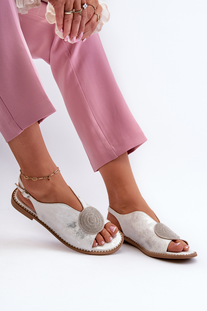 Dámske sandále s ozdobou na plochej podrážke S.Barski KV24-057 Strieborné