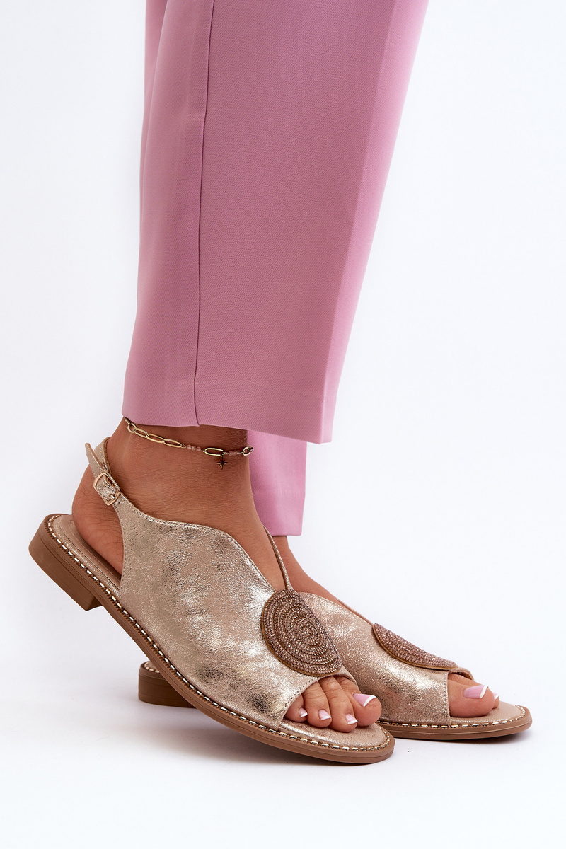 Dámske sandále s ozdobou na plochej podrážke S.Barski KV24-057 Zlaté
