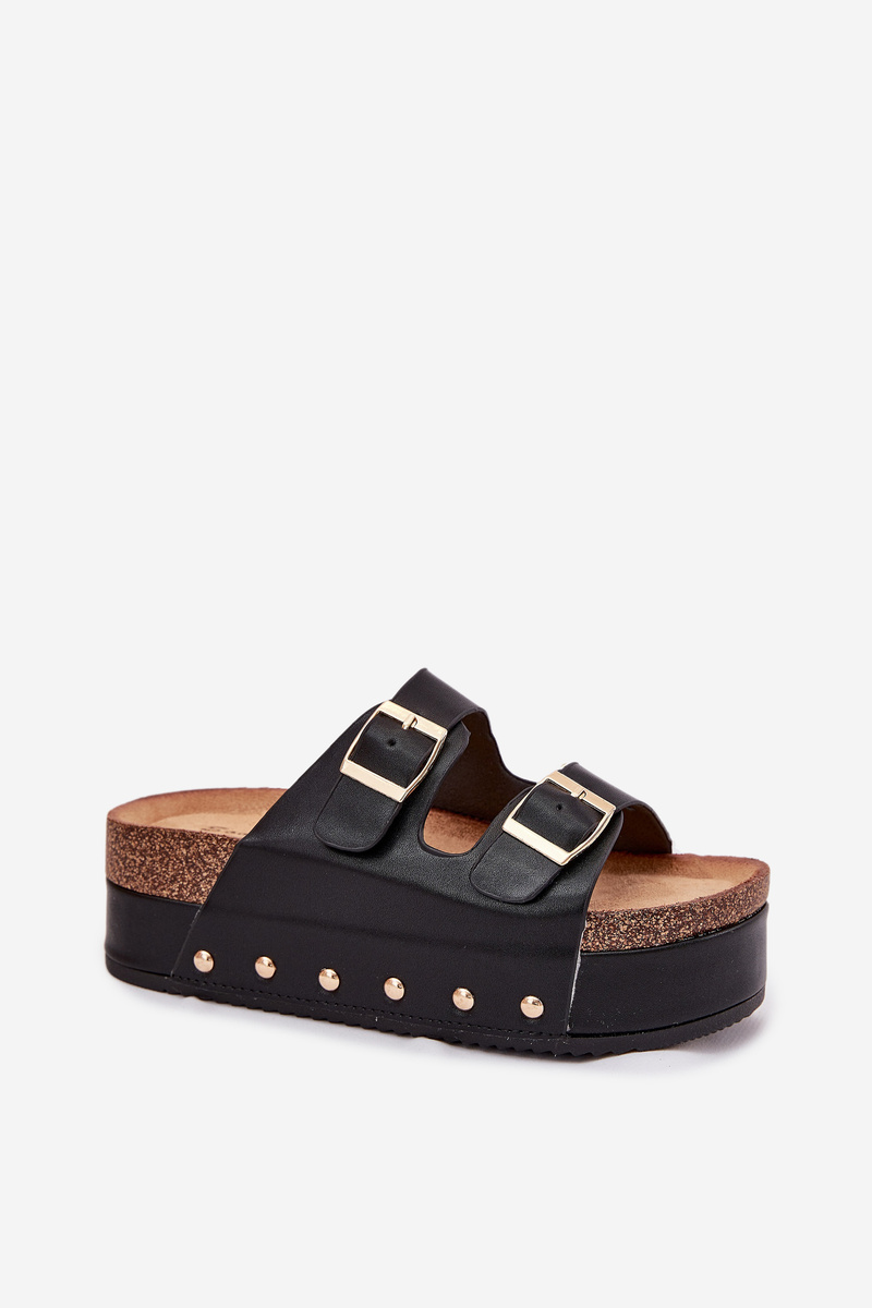 Dámske sandále s prackami na masívnej platforme čierne Odisene