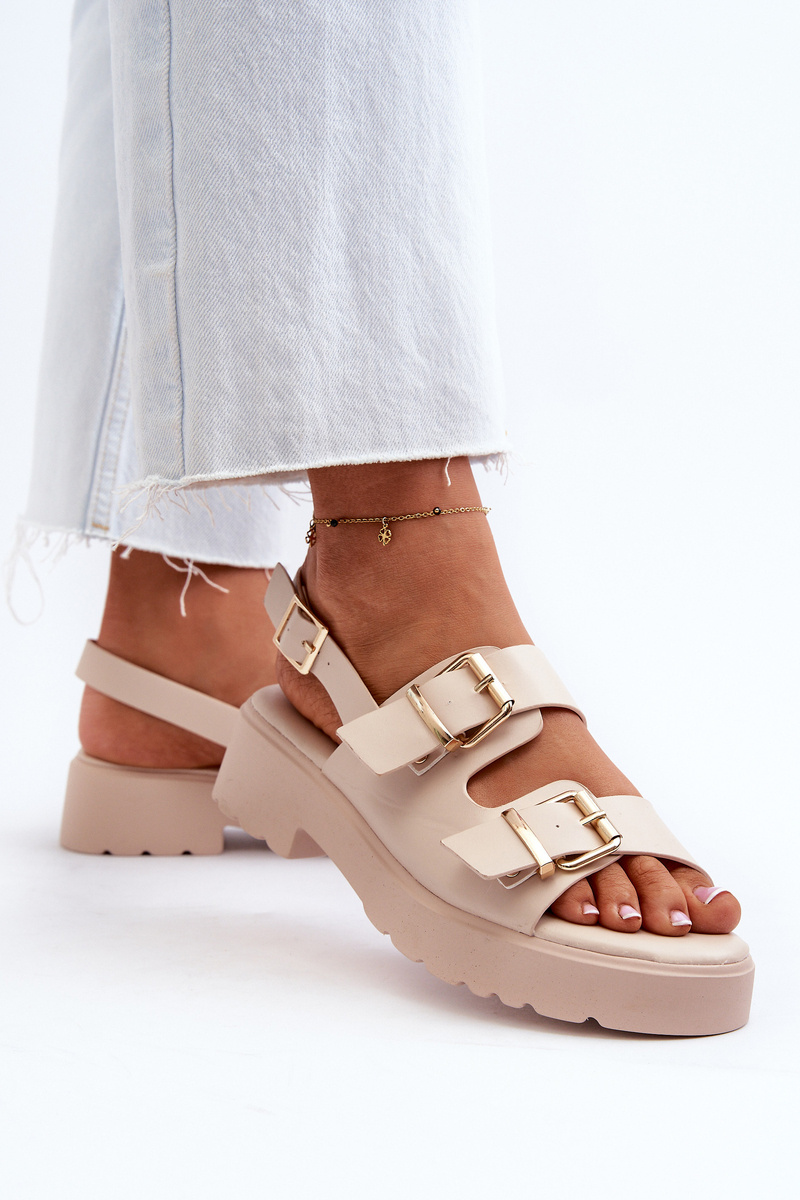 Dámske sandále s prepojkami z ekologickej kože béžové Konanttia