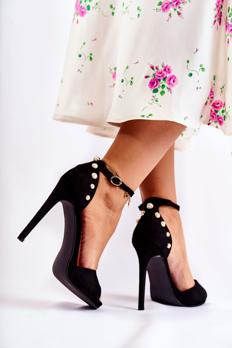 Nezvyčajné sandále na klasickej päte vo forme vysokého špendlíka. Vyrobené z ekologického semišu s dekoráciami vo forme napodobňujúcich perly. Nos objavený, zaoblený. Členok pripevnený okolo nastaviteľného pásu sponou. Ekologická kožená vložka je mäkká a pohodlná na použitie. Topánky majú stuhnutú pätu. Tento model ukradne srdce mnohých milencov vysokých podpätkov! Tieto sandále sú ideálne pre rôzne typy osláv, ako sú svadby alebo dátum. Pri výbere veľkosti navrhnite tabuľku veľkosti.