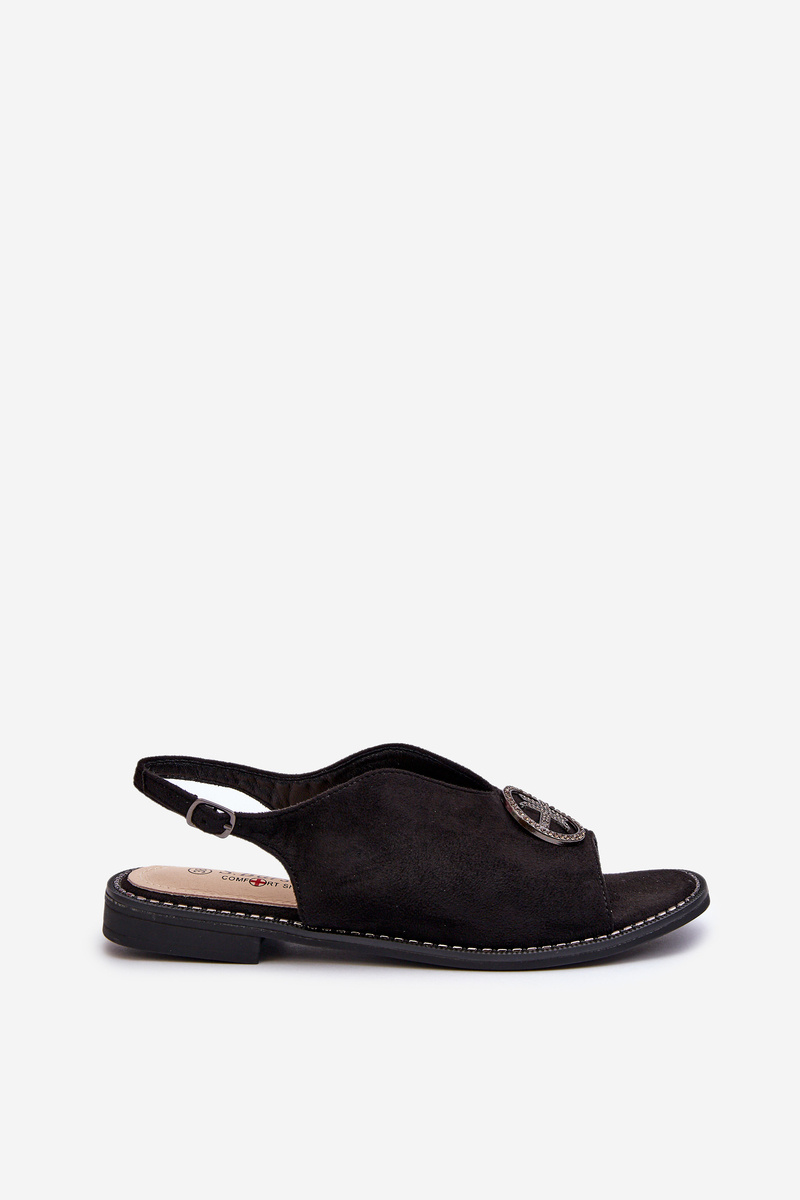 Krásne dámske sandále od značky S.Barski. Vyrobené z vysoko kvalitného eko semišu. Plochý podpätok zaisťuje pohodlie aj počas dlhého nosenia, a zlatá ozdoba im dodáva šarm. Nastaviteľný popruh so sponou zaručuje ideálne prispôsobenie každej nohe, a mäkká vložka z prírodnej kože poskytuje komfort pri každom kroku. Tento model určite bude skvelým doplnkom mnohých štýlov, dodávajúc im elegantný akcent! Při výběru velikosti se řiďte tabulkou velikostí.