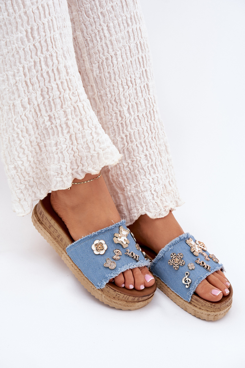 Dámske sandále so zlatými ozdobami na platforme modré Rigasta