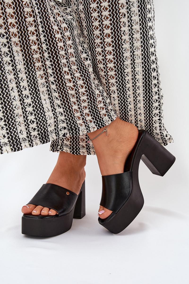 Dámske Sandále Z Eko Kože Na Opätku A Platforme Čierne Tamirella