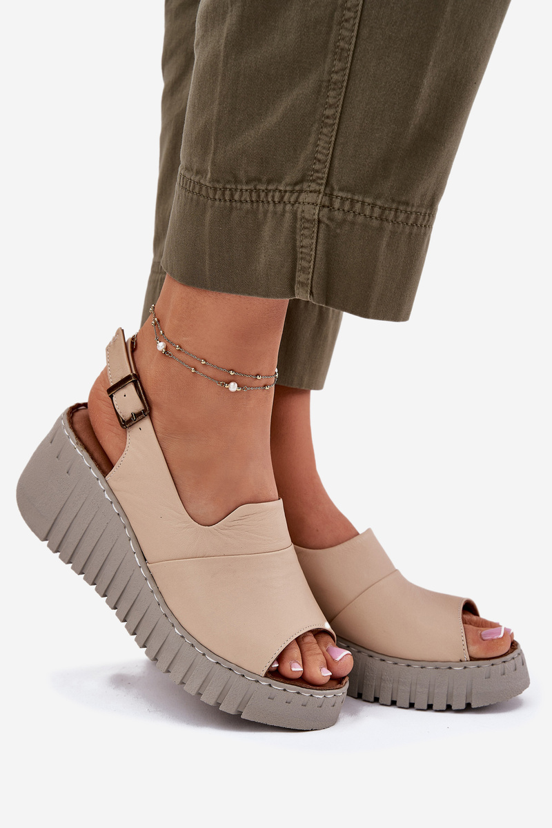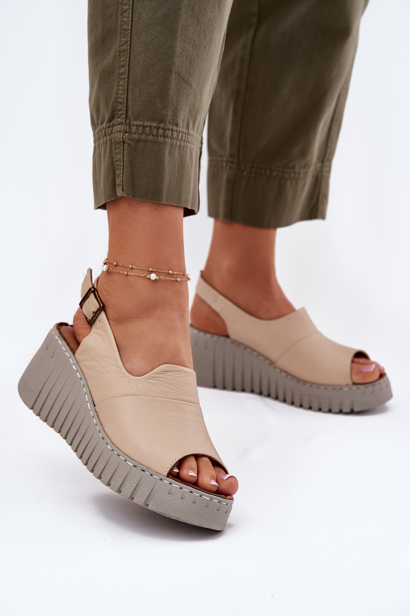 Dámske Sandále Z Prírodnej Kože Na Klíne Artiker Béžové 56C0957