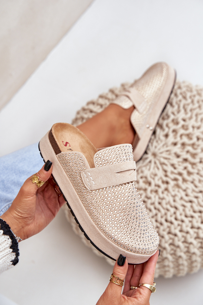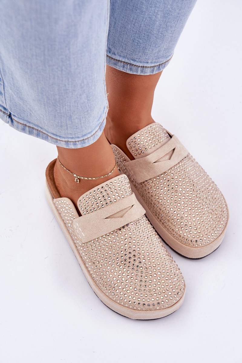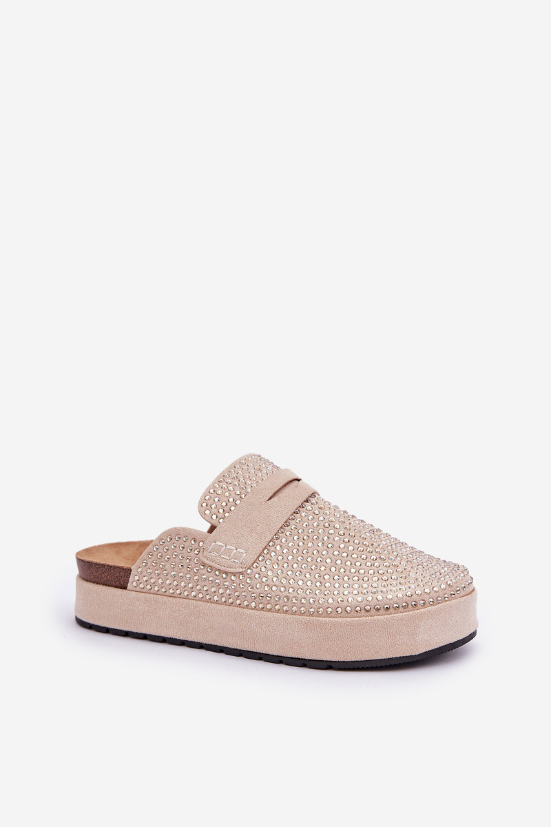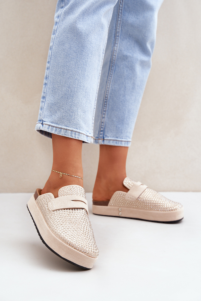 Dámske sandále zdobené zirkónmi na platforme béžové Deorani