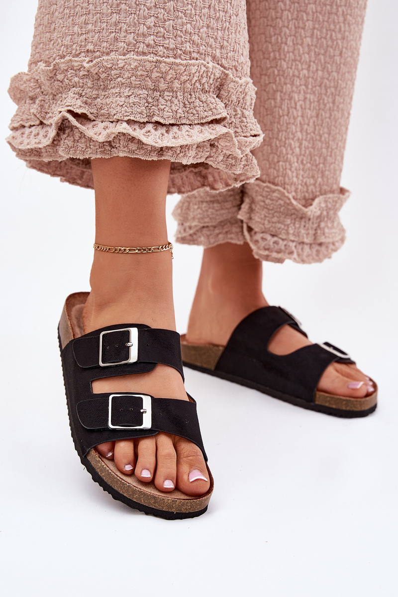 Dámske Sandały Na Korkovej Platforme S Prackami Čierne Evisolla