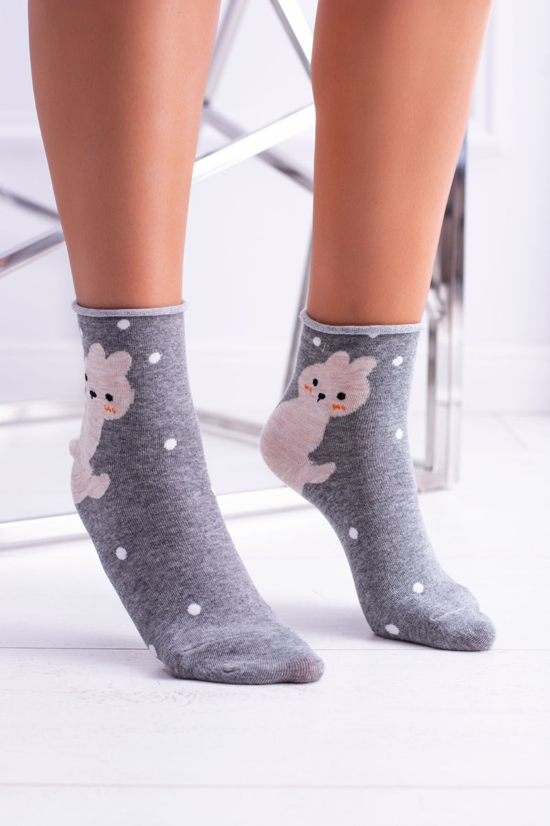 Dámske šedé ponožky s králikom
