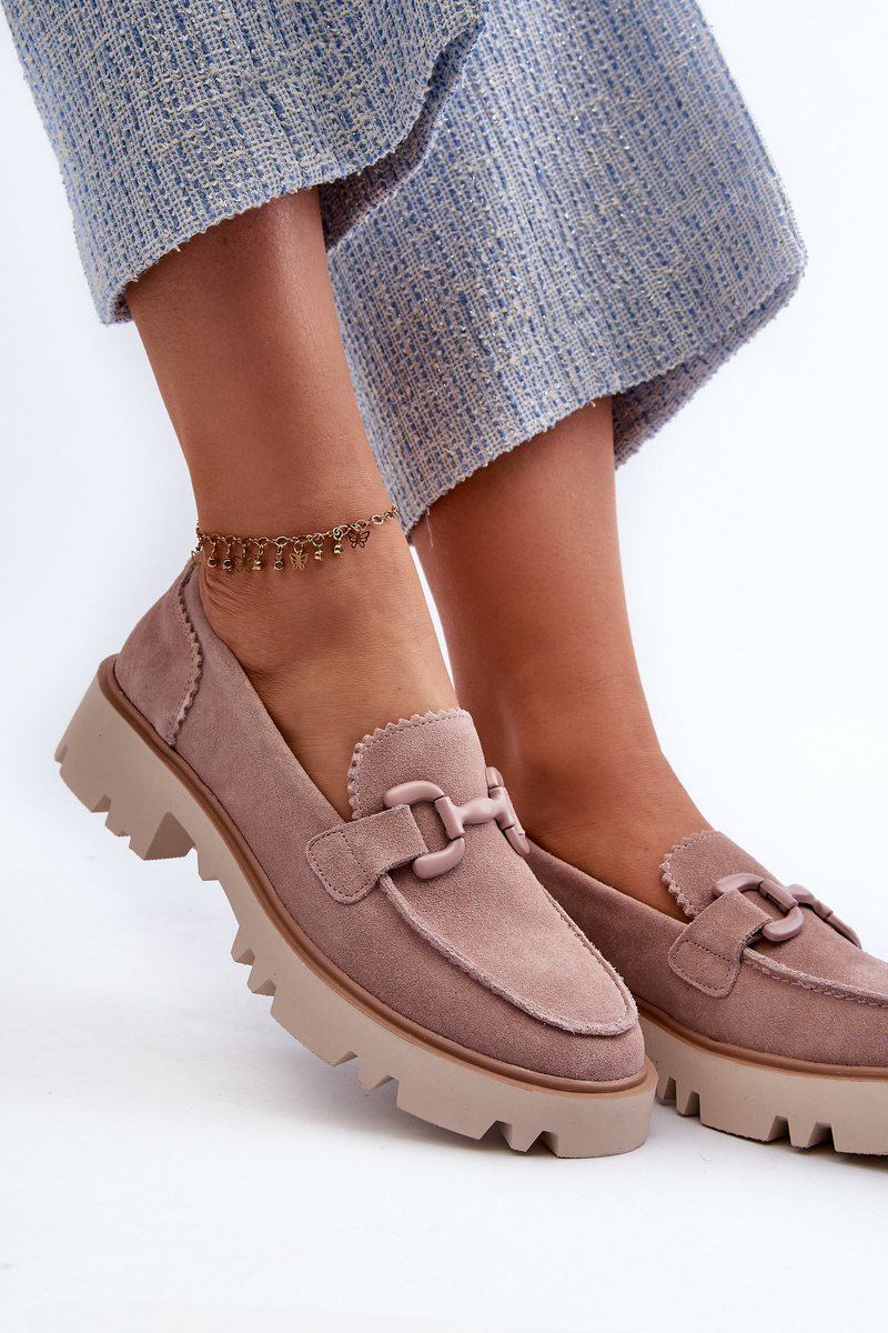 Dámske semišové mokasíny s ozdobou béžové D&A TW117 Béžové
