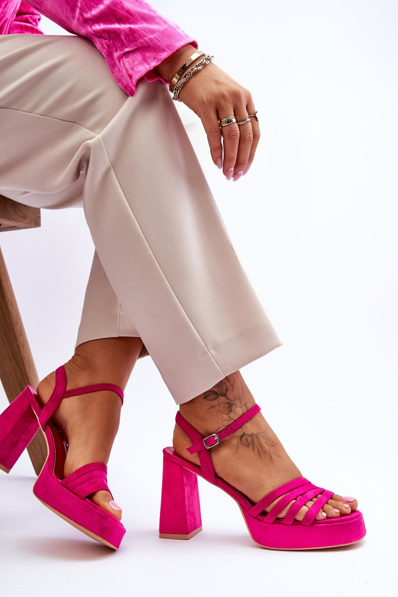 Módne dámske sandále zabudované na masívne miesto a jemnú platformu. Majú prúžky vpredu. Horná časť ekologického semišu. Mäkká vložka vyrobená z ekologickej kože zaistí pohodlie počas používania. Sandále majú nastaviteľný pás pripevnený okolo členku pre pracku. Tento model je hitom, takže už nečakajte a kúpte si ešte dnes! Pri výbere veľkosti navrhnite tabuľku veľkosti. /p>