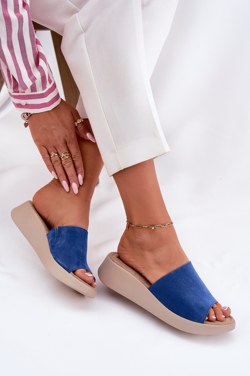 Dámske semišové sandále na klíne Panto Fino Modré RR267041
