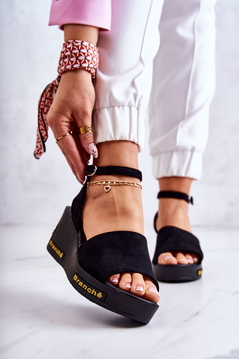 Módne dámske sandále zabudované na klin a jemnú platformu. Vyrobené z príjemného ekologického semišu. Riadok je nastaviteľný a pripevnený prackou. Vložka je mäkká a je vyrobená z ekologickej kože. Platforma obsahuje nápisy vyrobené z gumového plastu. Širší popruh na prednej strane drží nohu dokonale pred pohybu. Perfektný model pre leto, ktorý by ste mali mať vo svojom šatníku! Pri výbere veľkosti navrhnite tabuľku veľkosti.