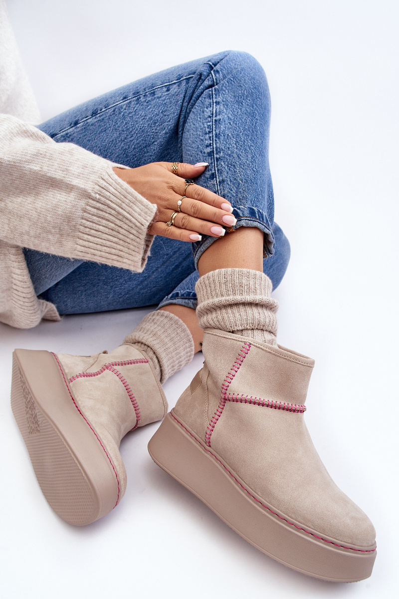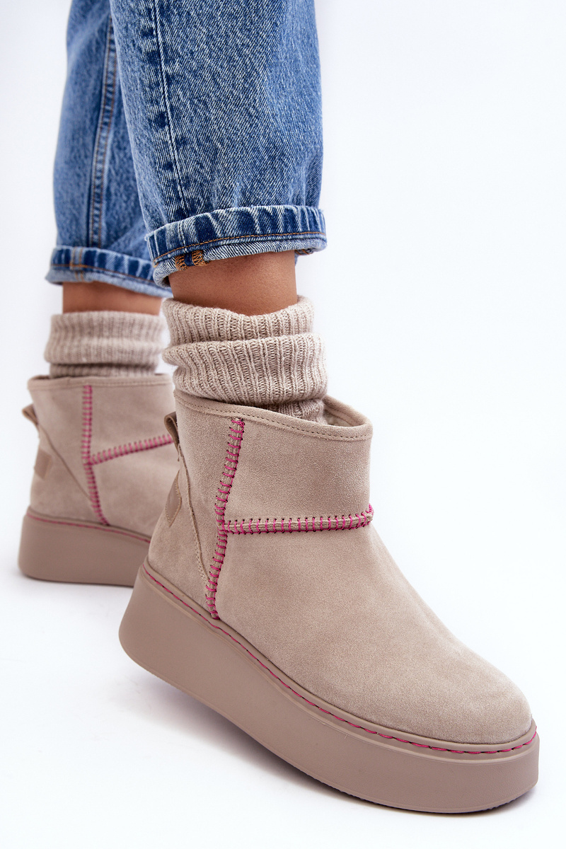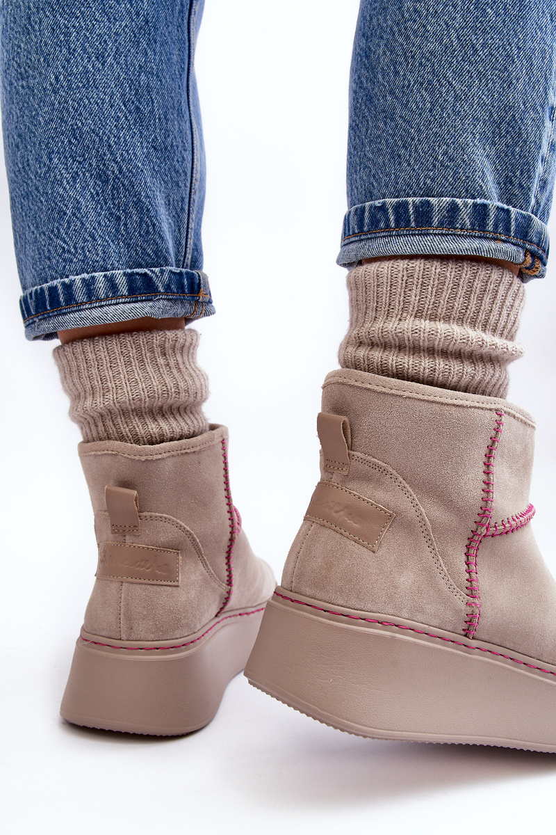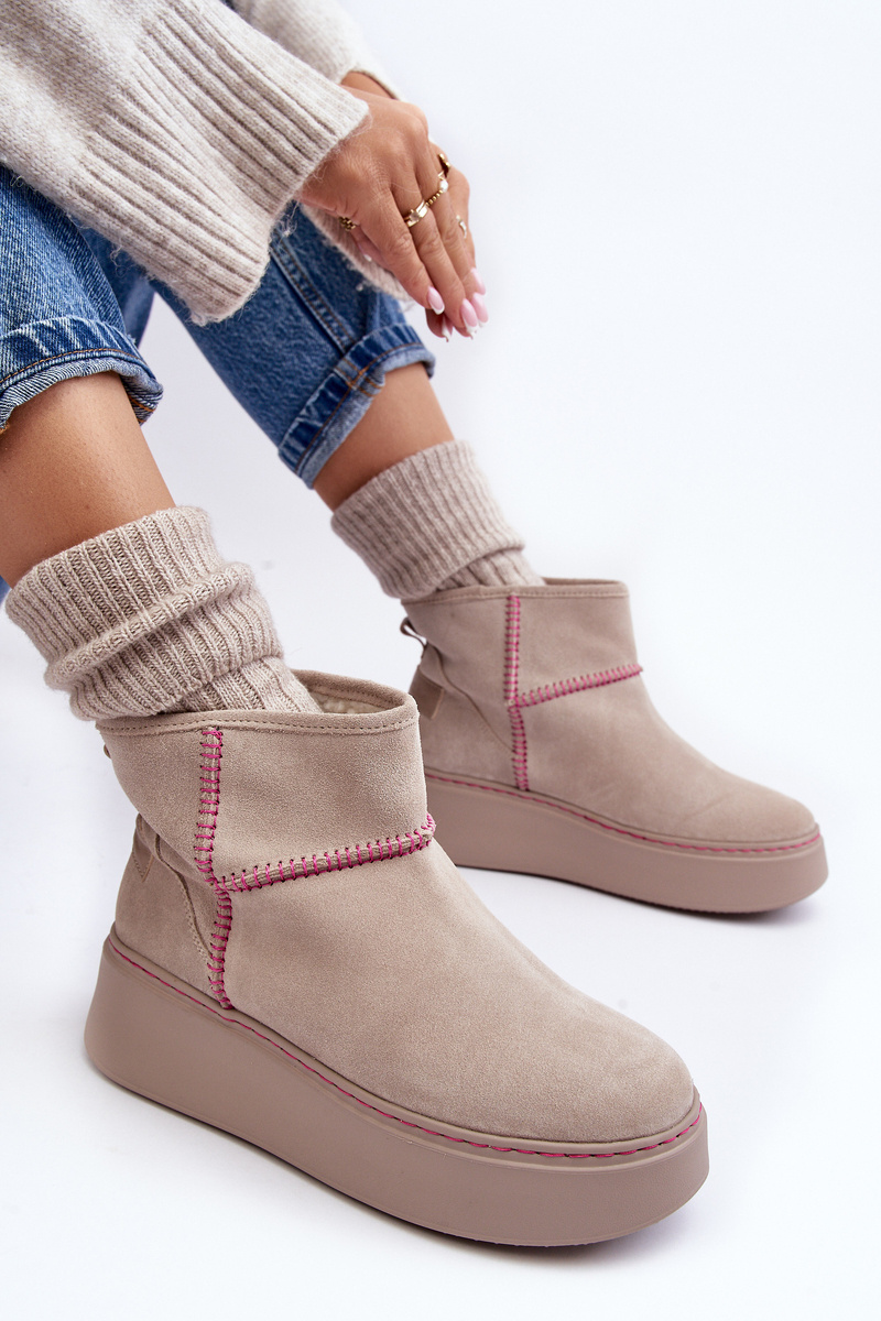 Dámske semišové snehové topánky Maciejka 06257-22 Svetelná béža