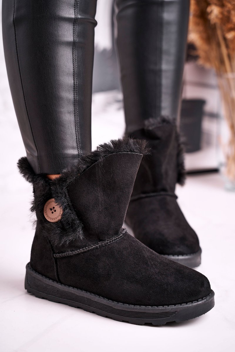 Dámske semišové snehové topánky s kožušinovým čiernym gombíkom