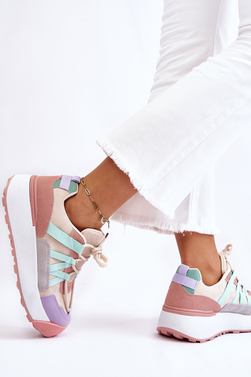 Dámske semišové športové topánky na platforme Beige-Pink Rohan