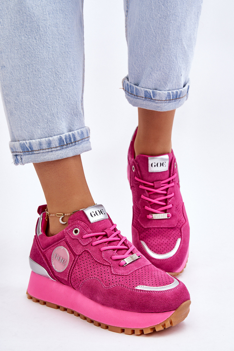 Dámske semišové športové topánky na platforme Goe LL2N4002 Fuksja