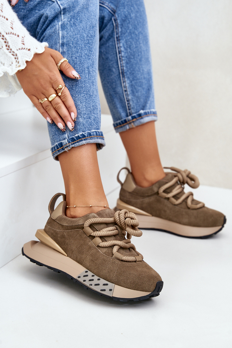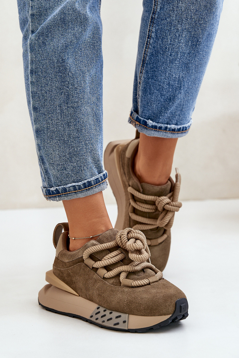 Dámske Semišové Tenisky Na Platforme S Hrubým Šnurovaním Artiker 54C1466 Svetlohnedé