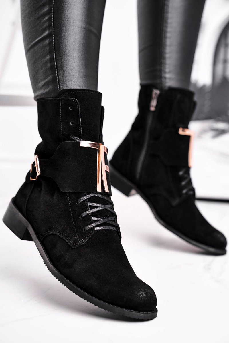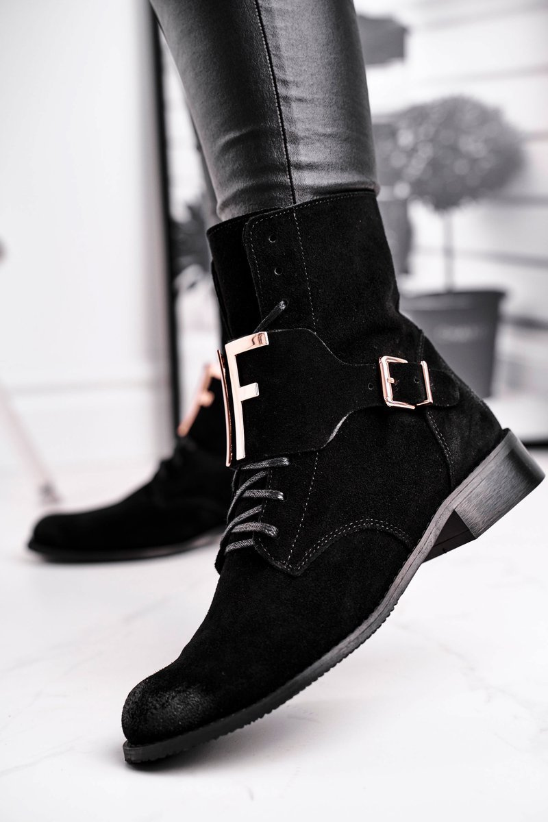 Topánky sú vyrobené z prírodného semišu. Zdobenie vo forme veľkej pracky a zlatých listov krásne zdôrazňuje ich jedinečný štýl. Uvedenie uľahčí posúvača šité na boku, zatiaľ čo šnúrky sa budú starať o lepšie fit. Roboty založené na jemnej plochej päte. Pri výbere veľkosti navrhnite tabuľku veľkosti.