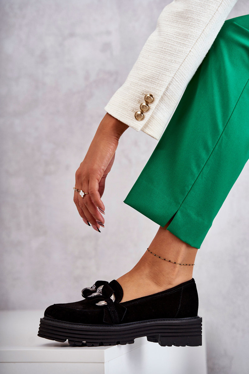 Klasické topánky sú vyrobené z vysoko kvalitnej semišovej prírodnej kože. Na prednej strane je charakteristická dekorácia vo forme reťazca s prepletenými popruhmi vyrobeným z prírodného semišu. Tieto topánky majú plošinu a plochú pätu. Podrážka s drážkami bude perfektná z nerovnomernej pôdy. Skvelý model pre mnoho štýlov! Pohodlné a módne zároveň. Musíte ich mať! Pri výbere veľkosti navrhnite tabuľku veľkosti.