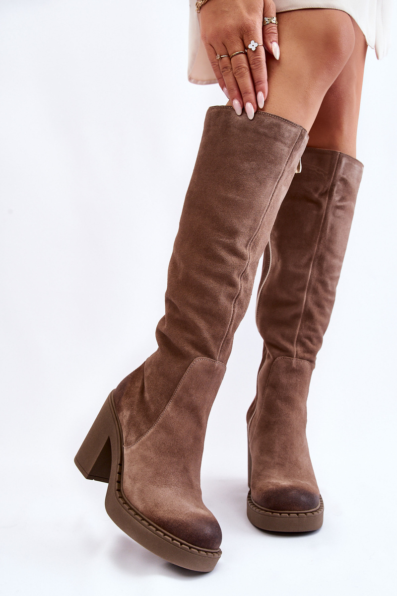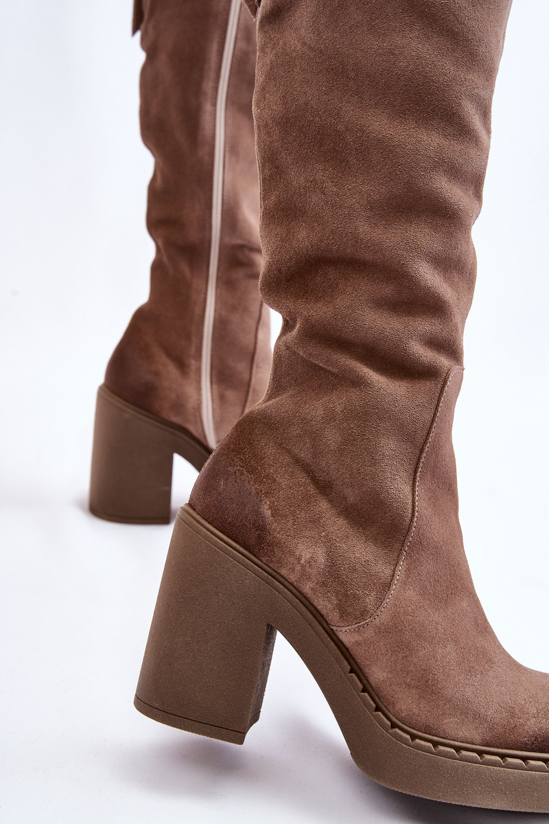 Dámske semišové topánky na masívnom stĺpovom svetlo hnedom valeris