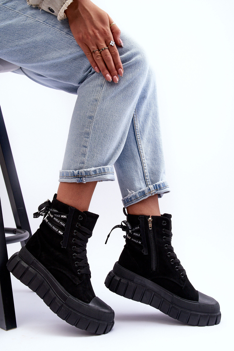 Dámske semišové topánky na platforme Čierna kroková